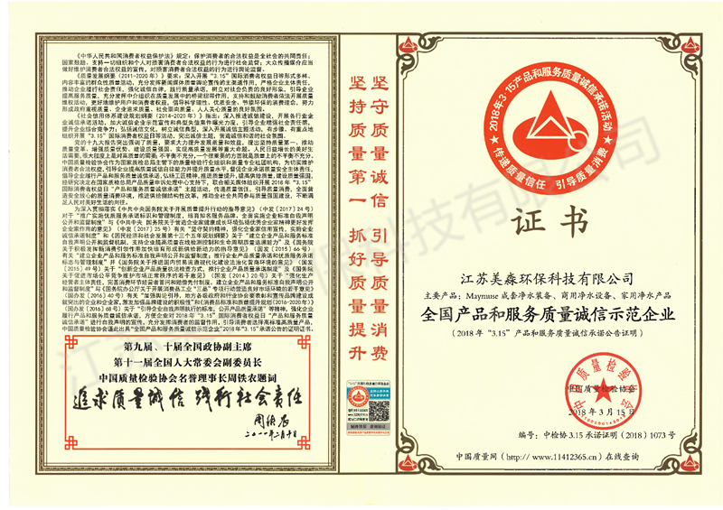 全系列產品獲得了CE和UL等歐美權威機構認證,中國衛生部涉水產品衛生許可批件以及CQC認證。